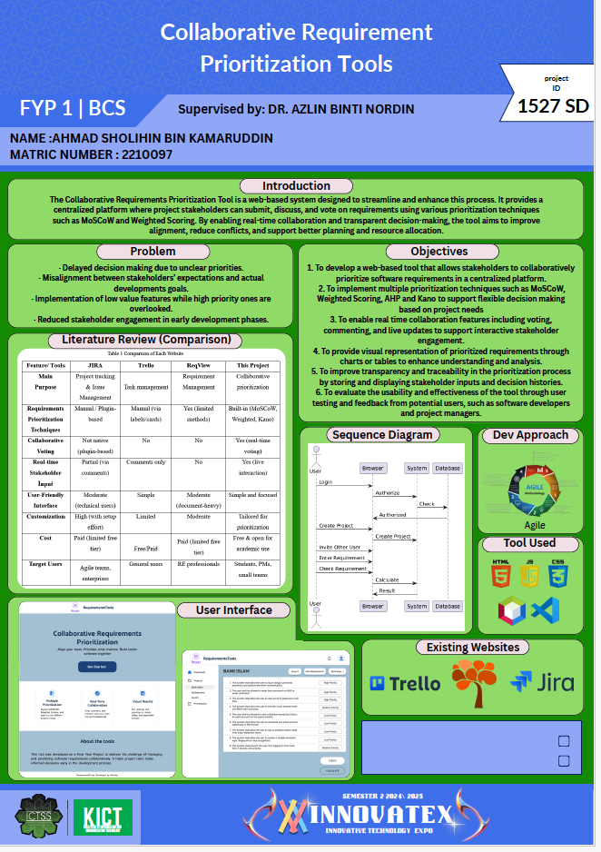 3. | COLLABORATIVE REQS PRIORITIZATION TOOL | AHMAD SHOLIHIN BIN KAMARUDDIN (2210097) | – |